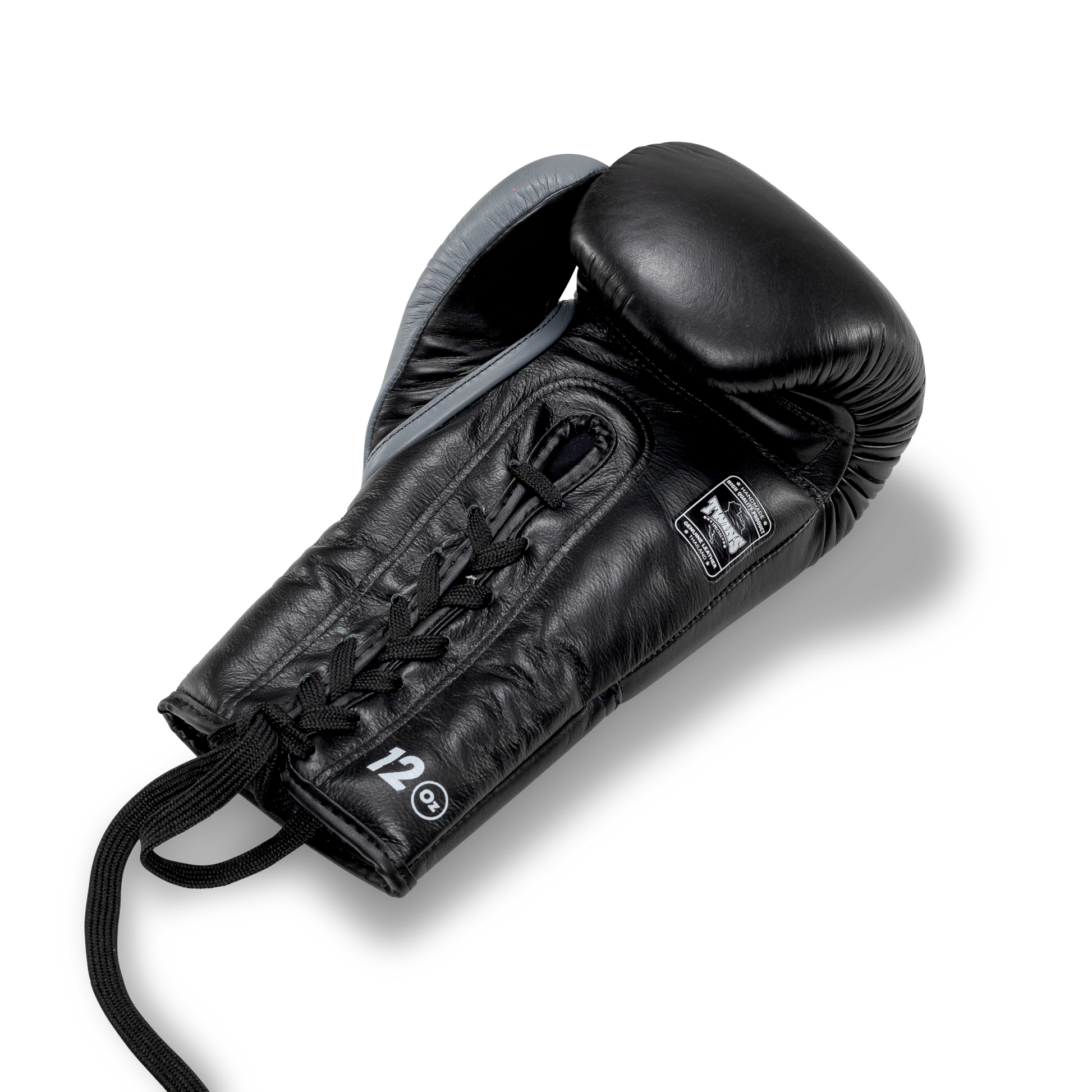 These competition gloves from Twins provide superior hand and wrist protection for professional fights and training sessions on pads and bags. The attached thumb and lace-up wrist ensure safety and prevent injuries. Handcrafted with premium Thai leather, they offer a secure and supportive fit. Noteworthy features include being handmade in Thailand, an attached thumb, and a lace-up wrist, all using 100% Thai leather.
